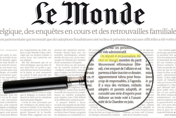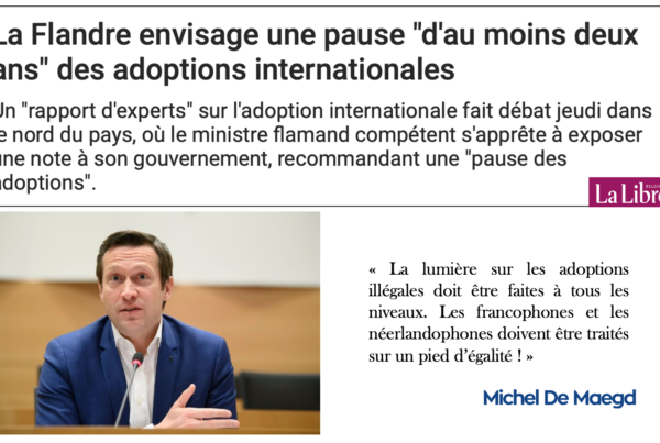Depuis trois ans maintenant, je me bats à la Chambre et au niveau international pour faire cesser les adoptions illégales et venir en aide aux…