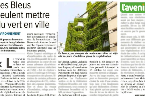 Le texte que j'ai déposé récemment concernant le financement de la lutte contre le réchauffement climatique, co-signé ma mes collègues Clarinval, Farih, Van Der Straeten,…