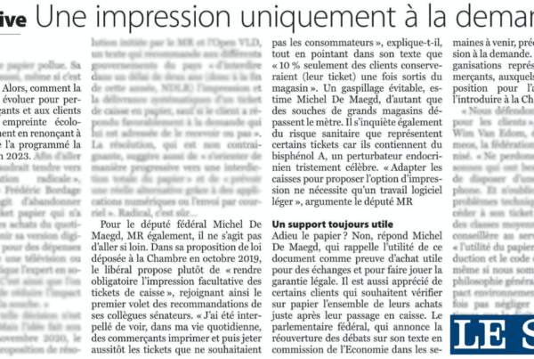 https://www.facebook.com/mdemaegd/videos/532856067538558/ L'objectif de cette proposition n'est pas de supprimer les tickets de caisse version papier, mais bien de laisser le choix au client. Vous souhaitez…
